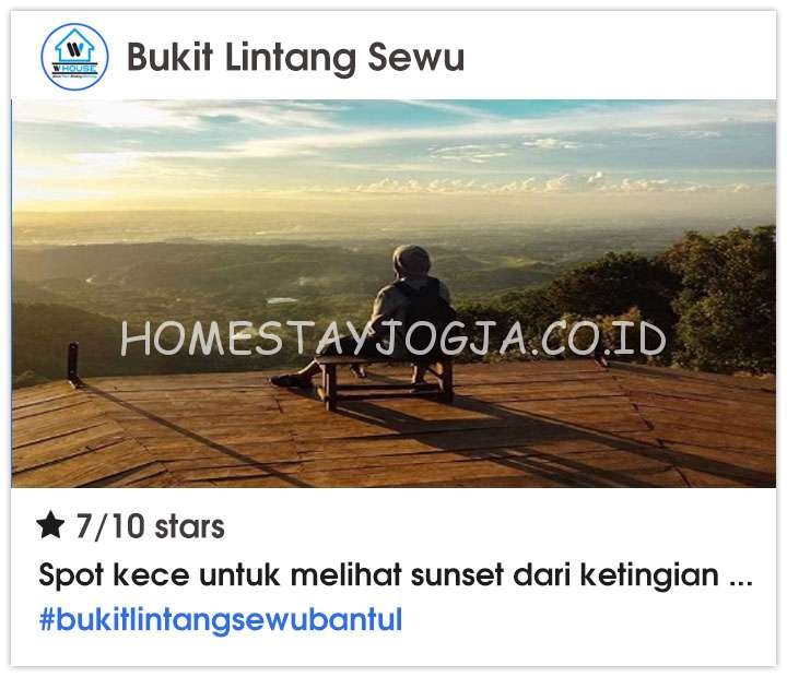 Berkunjung ke Bukit Lintang Sewu memang menyenangkan. Yuk segera agendakan liburan Anda sekarang juga dengan menyewa salah satu homestay di Jogja agar wisata anda lebih menyenangkan.
